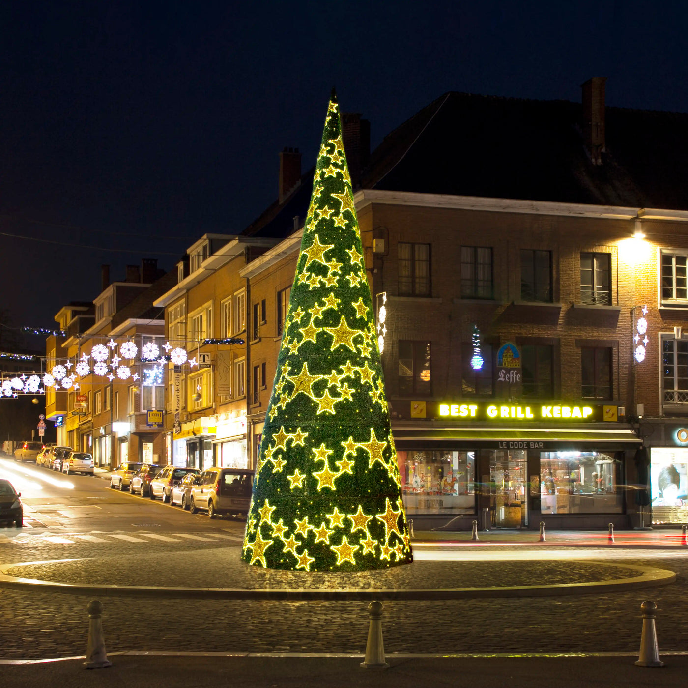The giant illuminated Hollywood Tree is artfully designed with gold and green foliage and covered in warm white twinkling light that will make your holiday shine as bright as a Hollywood star! Our Hollywood Tree is decked in stars and makes a chic addition to modern Christmas programs. Surround your tree with our oversized ornaments and gift boxes or opt for a simple centerpiece, allowing the Hollywood Tree to be the star of your holiday show.