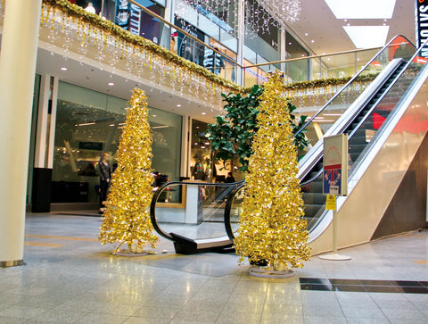 Welcome your guests with the bright and elegant Manhattan Tree. This luminous golden tree is constructed with gold flitter along with acrylic and pearl beading woven through twinkling warm white lighting. This glamourous tree pairs beautifully with our Christmas Elegance ornamentation package for a chic and over-the-top holiday look.